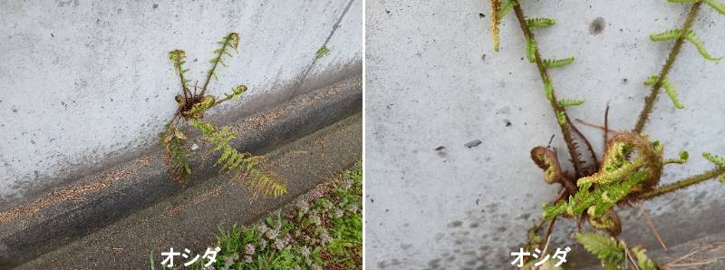オシダ(雄羊歯)は、日本全国の林床に自生する、オシダ科の代表的な大型シダ植物です。根茎から長さ1mに達する濃緑色の葉を放射状に密生させ、鳥の羽のような形で立ち上がる姿が特徴です。冬に葉を落とす「夏緑性」で、丈夫で育てやすいため、庭のシェードガーデン(日陰の庭)や植栽でも利用されています。根茎が太く直立し、そこから大きな葉が円状に展開します。葉は1回羽状複葉で、全体的には先端が尾状に伸びた披針形をしています。北海道から四国までの山林、特に湿り気のある温帯林の林下に群生します。基本的には冬に落葉しますが、冬でも緑の葉が雪の下に残ることもあり、その葉には養分が蓄えられています。