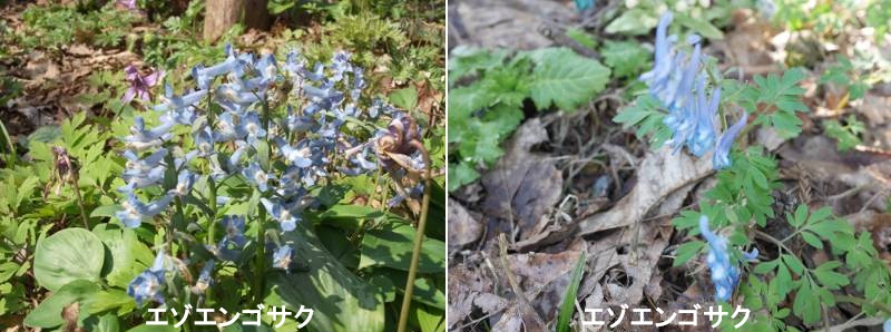 エゾエンゴサク(蝦夷延胡索)は、北海道や東北地方の早春の林床に群生するケシ科の多年草です。雪解けとともに鮮やかな青〜紫色の花を咲かせる「スプリング・エフェメラル」の代表格で、春の訪れを告げる野草として親しまれています。エゾエンゴサクは、北海道から東北地方の日本海側に分布し、主に落葉広葉樹の湿った森林内に生える多年草です。群落を作り、早春の森林を一面青紫色に染める様はすばらしい。葉は楕円形の小葉3枚からなる複葉で、花の色は青系、紫系、赤系と変異が多く、時には白い花も見ることができます。花は茎の上部に総状に咲き、春先に花を咲かせ、若葉が広がる頃には地上部は枯れてなくなり、その後は翌春まで地中の地下茎で過ごす草花(スプリングエフェメラル)です。