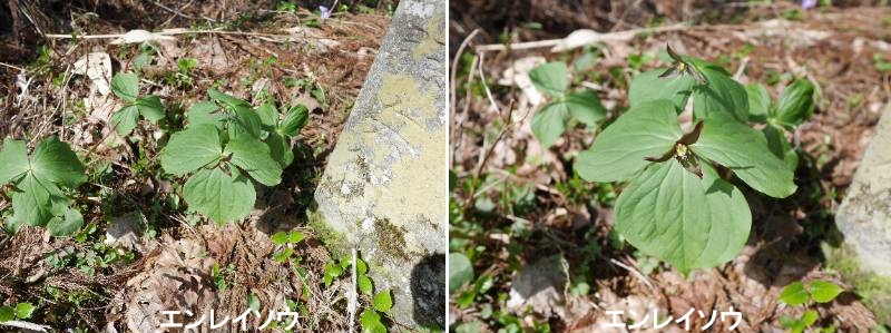 エンレイソウ(延齢草)は、春に林内でひっそりと咲く、シュロソウ科の多年草です。3枚の葉の中心に、花弁がない茶褐色や緑色の萼(がく)を3枚つけた花を咲かせる特徴的な姿をしており、開花まで約10〜15年もの長い年月をかけることで知られています。