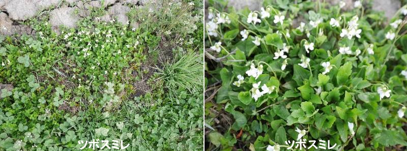 10cm〜20cm ほどになります。花は 春(3月〜5月頃)に見られます。白花で小型なため、アリアケスミレと混同されることがありますが、ツボスミレは葉が丸みを帯びたハート形(幅が広め)であるのに対し、アリアケスミレは葉が細長いため区別できます。また、タチツボスミレと名前が似ていますが、全く別の種類です。