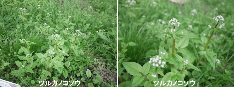 ツルカノコソウ(蔓鹿の子草)は、本州〜九州の湿った林床や谷沿いに自生するスイカズラ科の多年草です。春に白色〜薄桃色の小さな花を咲かせ、その後、細長い走出枝(ツル)を伸ばして地面を這い、繁殖する特徴があります。カノコソウとは異なり、薬用成分はほとんどありません。名前の由来は、花の様子が「鹿の子模様」に似たカノコソウの仲間で、花後に「蔓(つる)」を伸ばして増えるためです。春も半ばを過ぎるころツルカノコソウ(蔓鹿の子草)が咲き始め、暫くするとカノコソウ(鹿の子草)が可愛い蕾を付けるようになります。その花の形からも分かるように、いずれもオミナエシ科の花ですが、カノコソウは比較的山奥に咲き、散歩がてらというわけにはいかないですが、ツルカノコソウのほうは低地の山裾にも咲きます。