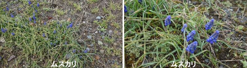 ムスカリは鮮やかな青紫色の花が春の花壇を彩り、チューリップなどほかの花を引き立てる名わき役といってもよい花です。丈夫で育てやすい秋植え球根で、丸い壺形の小花が、ブドウの房のように密集して咲く様子も愛嬌があります。花壇の縁取りやマッス植えなど、ある程度数をまとめて群生させると、さらにそのよさが発揮されます。植えっぱなしでも毎年よく咲き、グラウンドカバーとしても利用しやすく、青いカーペットを敷いたような景観がつくれます。ムスカリ属には40~50種がありますが、M・ボトリオイデスとM・アルメニアカムが最も多く一般的で、濃紫から淡青、白花などいくつかの品種があり、香りの強いものも見られます。そのほか、羽毛のような花が咲くハネムスカリや、花房の上部と下部で色が異なる2色咲きなど、ユニークな種類もあります。