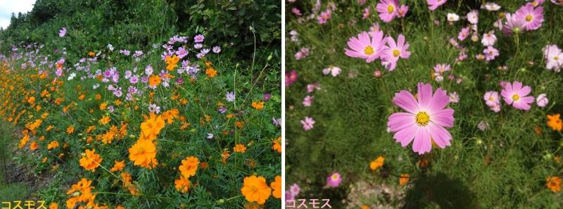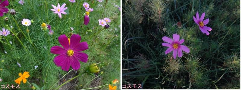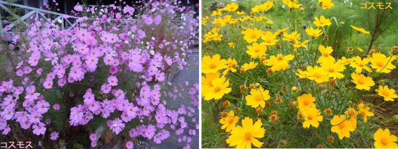 以来、日本の在来種の花より華やかさが感じられる姿から、コスモスが小説や詩歌に詠まれることが多くなりました。一般的にはコスモスといえば種としての「大波斯菊(オオハルシャギク)」を指すことが多く、学名はCosmos bipinnatus。属名はギリシア語の「美しい」に由来し、種小名は葉の形態から名づけられました。コスモスの別名は少なく、「秋桜」などがあります。読んで字のごとく、秋に桜のような花が咲くことに由来しています。花言葉は、コスモス全般は「乙女の真情」、白花は「優美」、赤花は「愛情」です。コスモスの花は、ピンクや白に加えて濃赤、黄やオレンジ色、複色が登場し、年々カラフルになっています。至って丈夫で、日当たりと風通しがよい場所ならば、あまり土質を選ばずに育ちます。日本の秋の風物詩となっているコスモスは、コスモス・ビピンナツスという種類です。道路脇や休耕地で、ピンクやまれに白い花を咲かせて群生するのが見られます。