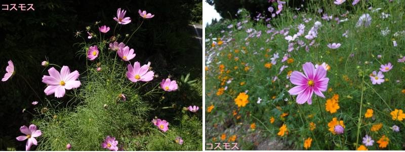 秋を代表するコスモスは渡来植物ですが、今ではすっかり日本の花となっています。繊細な茎と葉の感触は、花がなくとも印象的で、枝の先端に咲く端正な花が秋風に揺れる風情は、日本人の心に共感を呼んだのかもしれません。一見弱々しく見えますが、強風で茎が倒れても、そこから根を伸ばし、さらに成長して咲き乱れる強さも秘めています。コスモスの原産はメキシコが中心で、その野生の仲間は北米アリゾナから南米ボリビアにかけて30種近く生育しています。日本では花壇などに植えられる観賞花です。キク科の一年草で、茎はまばらに直立し、高さ1~2mになります。葉は対生し、秋に茎上部に直径6㎝程度の白色または淡紅色、時に深紅色の美しい花が次々に開きます。短日植物の代表で、日が短くなる秋に開花するのが特徴です。しかし、最近はコスモスの品種改良が進み、日の長さに関係なく、一年中咲く種類が普及しています。季節感が薄れてきたとはいえ、やはりコスモスは秋がふさわしいといえます。