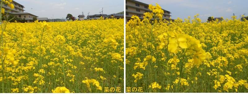 ただ、普段ハクサイの花を「菜の花」と呼ぶことはあまりありません。一般的に「菜の花」と呼ばれるのは、セイヨウカラシナとセイヨウアブラナの花です。春の川の土手、畑の中で花を咲かせているのは、だいたいこのどちらかです。名前からもわかるように、どちらも明治以降に海外から日本に入ってきた種類です。セイヨウアブラナは菜種油を取るため、セイヨウカラシナは食用のために栽培が盛んになり、それが川の土手などにも自然に広がっていったと思われます。また、全国で春の花として人気があるので、観光用や畑の肥料にと重視され、いろいろなところで保護され、栽培されてきたのも増えた要因になっています。日本には、在来種の「アブラナ」も生息しています。昔から野菜として、また油を採るために栽培されてきました。現在は、植物油の原料として栽培されているのはほとんどセイヨウアブラナで、在来種のアブラナは野菜として生産されることが多くなっています。在来種のアブラナとセイヨウアブラナを見分けるのは大変難しく、群生しているのを遠目で見ると、ほとんど分かりません。