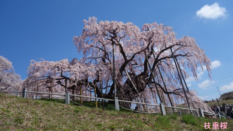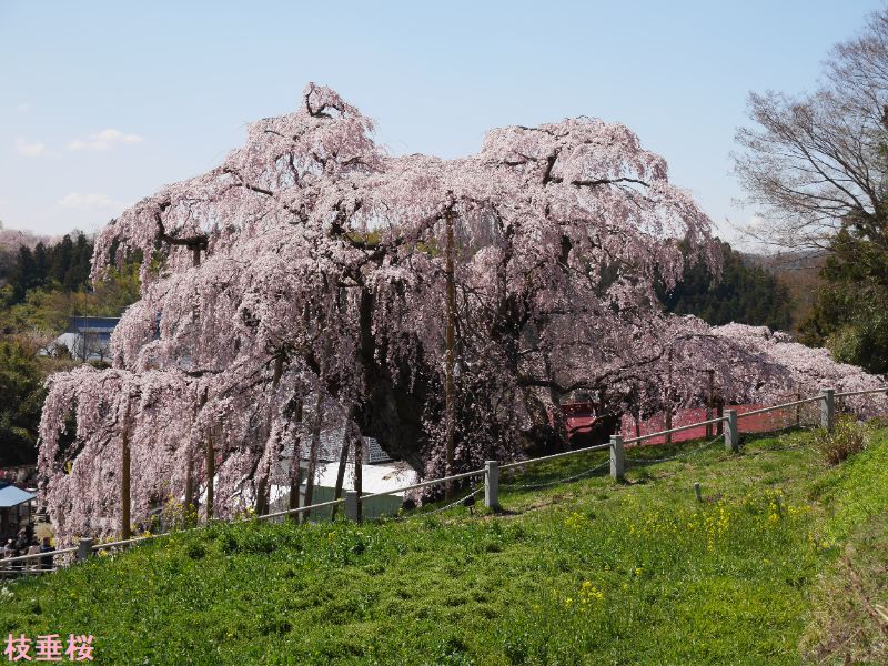 「シダレザクラ(枝垂桜)」は、枝が垂れる桜の総称です。一般的に品種としてのシダレザクラは、通常枝が上に伸びて成長するエドヒガンが下に垂れるものを指し、枝垂れ以外は、淡紅色で小輪の花を咲かせるエドヒガンの形質と同じです。品種としてのシダレザクラ以外にも、木が枝垂れている桜には濃い紅色で八重咲きの「ヤエベニシダレ」や、里桜類の枝垂れ性として菊咲きの「キクシダレ」などがあります。枝垂れ桜は糸桜とも言い、エドヒガンの枝が細く枝垂れるように垂れ下がったものを指します。枝垂れ桜の中でも花色が濃いものを紅枝垂れ、花が八重咲きのものを八重紅枝垂れと呼びます。