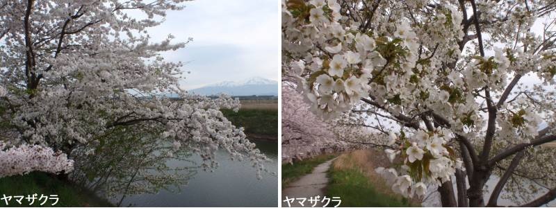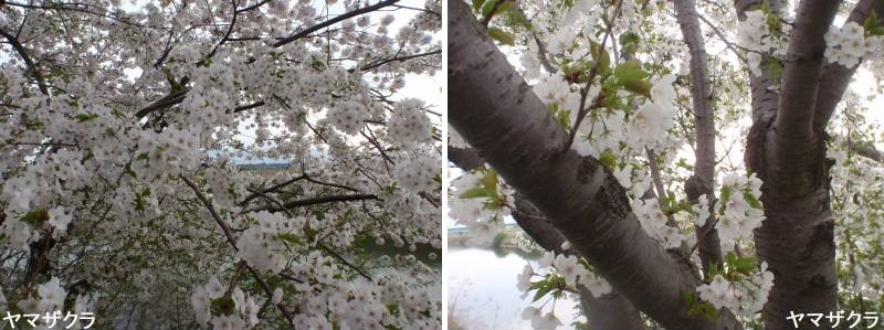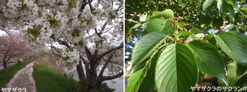 ヤマザクラ(山桜)は山に生え、桜の花の開花日の標準にされるソメイヨシノ(園芸品種)とちがって、花と葉が同時に開きます。色は白や薄紅色で変化が多いです。花のときの若葉は、茶、黄緑、緑色などになります。葉は開くと長さ5~9cm、幅3~4cmで裏が白く、毛がありません。秋に赤く紅葉し、幹は高さ7mほどになります。樹皮はチョコレート色で、横に薄茶色のすじがたくさんあります。サクランボ(果実)は初夏に熟し、食べると苦いです。町や村に近い雑木林やアカマツ林によく見られます。公園のソメイヨシノの花が咲くころ、これらの林では花をつけたものが点々と見えます。花と葉が開いていて、花や葉に毛がなければ、ヤマザクラです。花は昔から人々に親しまれてきました。奈良の吉野山、京都の嵐山などは、ヤマザクラの名所です。太閤秀吉の花見で有名な醍醐寺(京都市)の桜もヤマザクラです。花見といえば、今では、ソメイヨシノが多いですが、昔はヤマザクラの花が楽しまれました。ソメイヨシノは明治のはじめに現れた園芸品種で、花が華やかなので、全国に広まりました。