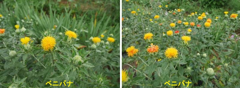 ベニバナの原産地はまだ確定していません。地域によって多数の品種が育てられています。原産地の有力な候補としては,古くから栽培されていたインドやエジプト,アザミ類の野生が多いアフリカ・ナイル川流域(エチオピアなど),およびベニバナ近縁の野生種が多い中近東付近(アフガニスタンなど)があげられています。最近ではゲノム(遺伝子情報)の比較なども行われており,中近東のベニバナ属の野生種に染色体数やゲノム構成の一致するものが確認されています。紅花の代表的な特性は,花のもつ色素です。紅花の花には黄色素サフロールイエローと紅色素カルサミンの2種類の色素が含まれていて,いずれも染め物などに利用されています。サフロールイエローは水溶性で簡単に色素が取り出せるため,安価な衣料品の染めや料理の着色などに使用されます。一方,カルサミンは発色がよく,高級な衣料品や化粧の紅などに利用されています。こちらは水に溶けないため,この色素を取り出すために紅餅などのさまざまな技法が開発されました。