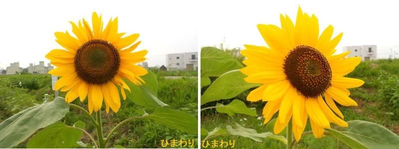 大ぶりな黄色の花を観賞用に、または種を食用とするために広く栽培されています。和名で「向日葵」と表記するほか、「日廻り草」「日輪草」「日車」「天竺葵」などとも呼ばれます。ひまわりの花は大きな花を1つ咲かせているイメージが強いですが、実は多くの花が集まって1つの花の形を形成しています。これは「頭状花序」と呼ばれ、キク科の植物に見られる特徴です。黄色い花びらの部分の花を「舌状花」、内側の色が濃く花びらがない部分の花を「筒状花」とも呼びます。ひまわりは学名を「Helianthus」と言い、これは太陽の花という意味です。英名では「sunflower」。これは、太陽の動きに応じて、ひまわり自身もその花の向きを変えると言われていることに由来しています。ひまわりが蕾をつけるまでの若く成長が盛んな時期、茎の上部は太陽と正面から向き合うように動き、朝には東を向いていたものが日没時には西を向いています。