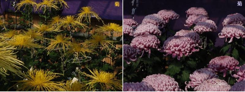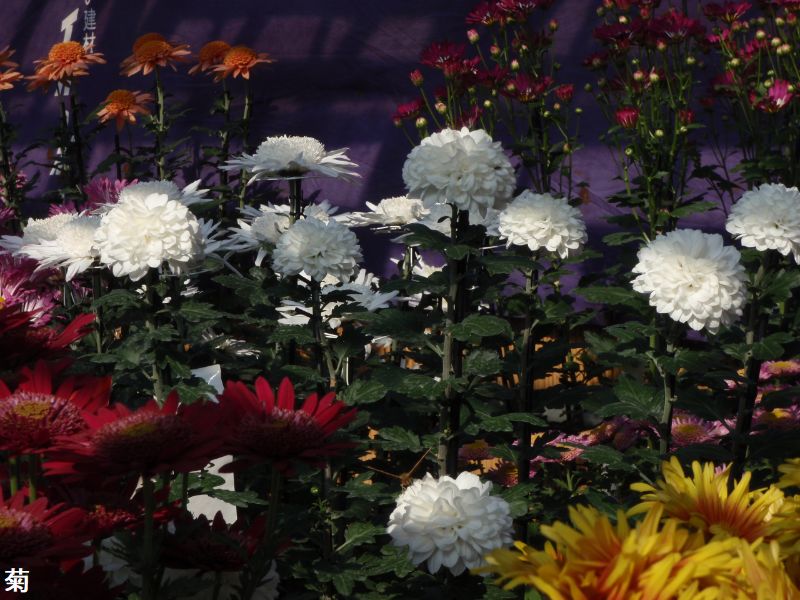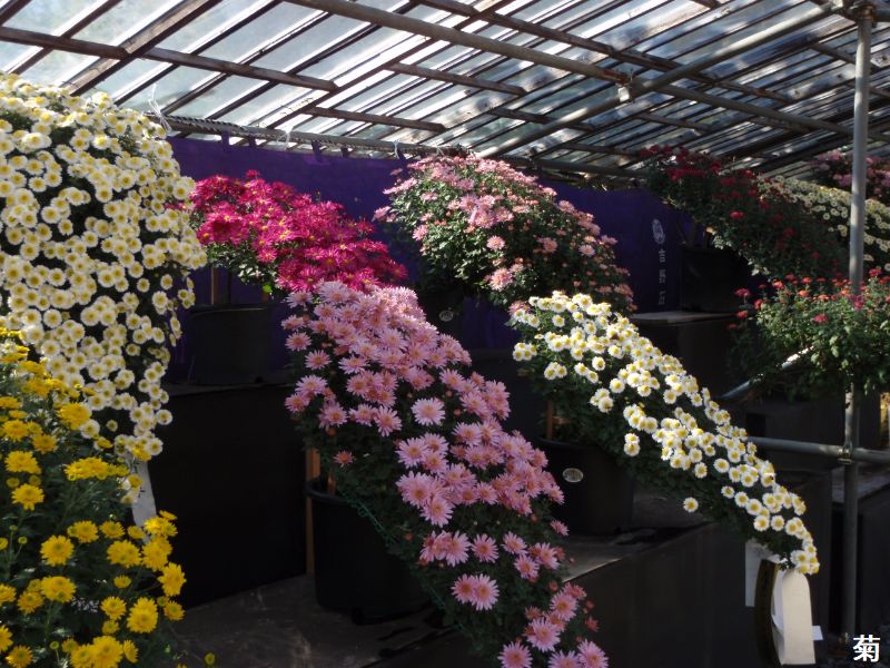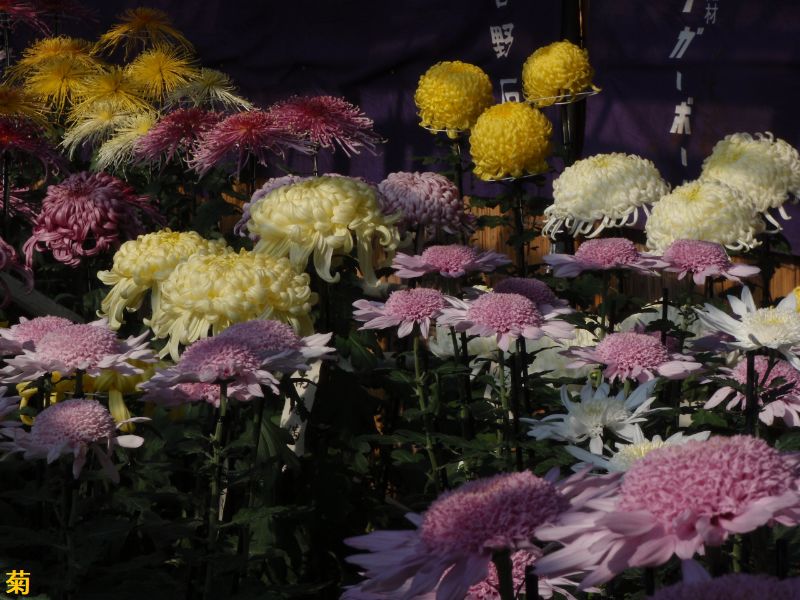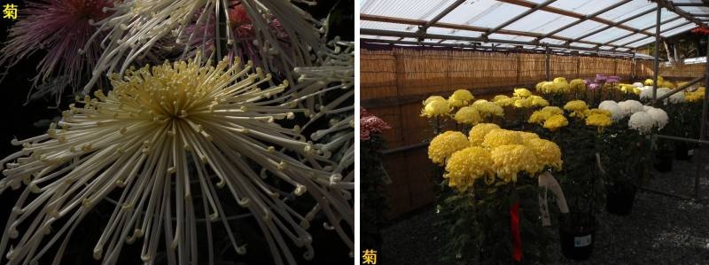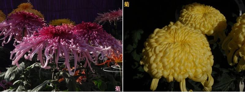 原産地は中国で、日本には奈良時代に薬用や鑑賞用植物として伝わったとされます。平安時代になるとその美しさが貴族の間で特に愛好されるようになり、旧暦9月9日(現代の10月中旬頃)には「重用の節句」が別名「菊の節句」とも呼ばれるようになりました。鎌倉時代には後鳥羽上皇により皇室の紋とされ、後には公家や武家に家紋として下賜、蒔絵や衣装の文様としても流行し、暮らしの中に取り入れられるようになっていきます。さらに江戸時代には園芸品種が開発されて、現在では約200種ほどに。多くの人から愛されるお花となりました。日本で開発された園芸品種を「和菊」、欧米で改良されて日本へ伝わった品種を「洋菊」と呼びます。花の大きさごとに「大輪菊」「中輪菊」「小輪菊」と分類されます。また食用品種も広く流通しています。
