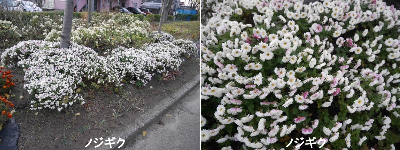 ノジギクは、キク科キク属の多年草で、立冬も過ぎ、露霜に遭っても野山や路傍でなお咲き誇り、景を彩ってくれるのがノギク(野菊)の仲間です。「野菊」とは野生の菊を表す総称で、可憐な白い花を咲かせるノジギク(野路菊)は、その代表種。植物学者の牧野富太郎博士(1862~