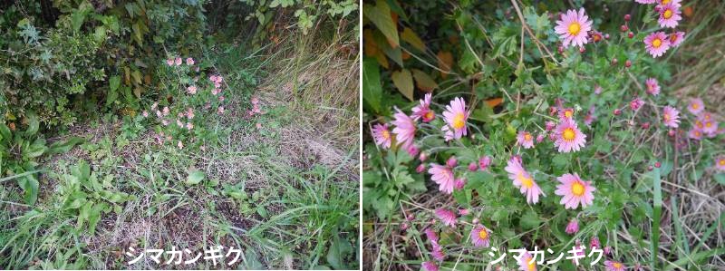 シマカンギクは、朝鮮半島、中国に分布して、日当たりのよい山麓などに生える多年草です。茎の基のほうは倒れて地を這いますが、上部は立ちあがって高さ40~60cmほどになります。葉は深緑色で葉柄があって、葉柄の基には葉状の仮托葉をもち、互生します。葉身は卵円形で5つに羽裂し、各裂片はきょ歯状になります。秋に写真のように直径2~3cmほどの頭花を散房状につけます。頭花には周辺に一列の舌状花があり、中心部に多数の管状花があります。舌状花が白色のものや、全体に毛の多いものなど変異が多いことが知られます。シマカンギクは観賞用としても美しい花ですが、薬用としても使用されます。漢方ではキクカ(菊花)といい、漢方処方の釣藤散に配合される生薬で、現行の日本薬局方にも収載されています。
