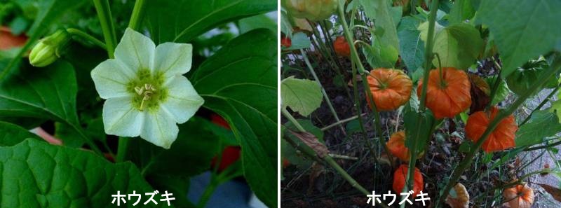 ホオズキは、赤いちょうちんがぶら下がったような姿が愛らしく、古くから親しまれてきました。このちょうちんのような袋は、ホオズキの萼です。ホオズキは3月ごろ、地下茎から芽を伸ばし始め、5月から6月ごろ、伸びた茎の各節に薄クリーム色の花を咲かせます。花が受粉すると果実だけではなく、萼も非常に大きく成長し、袋状に果実を包み込みます。袋状に育った萼は、最初緑色ですが、8月ごろから朱赤に色づき、これが観賞用にされています。秋になるとやがて地上部が枯れ、冬は地下茎のみとなって冬越しします。切り花や鉢物として少し早い時期に出回る色づいたホオズキは、バナナを黄色く熟させる際に使われるのと同じ、エスレルという植物成長調整剤で処理されたものです。浅草寺の「ほおずき市」で、毎年夏に鉢仕立てのホオズキが売られるのが有名ですが、もともとは果実が解熱薬になる、同じホオズキ属のセンナリホオズキ(Physalis angulata)を買い、夏の病気に備えたのが始まりです。