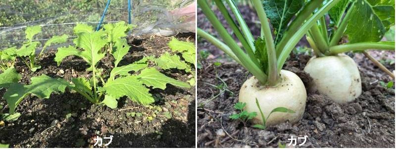 カブは、白い球型の小カブが一般的ですが、赤や黄、紫色など、さまざまな色や形、大きさの品種があります。地域に根差す在来種が多いのも特徴で、その数は80とも言われます。根は生でも、みずみずしくて美味しいですし、漬けたり、焼いたり、煮たりすると、食感や甘味が変化して、また違った楽しみがあります。また、1時間ほど干すだけでも甘みと旨みが凝縮されます。葉は、アクもアクが少なく使いやすいので、浅漬けや煮びたし、炒めものなどにしていただきましょう。カリウムやビタミンC、食物繊維、デンプンを分解する消化酵素のジアスターゼなどが含まれます。生で食べると消化酵素を効率的に摂取できると言われており、胃もたれや胸やけの解消に良いです。葉の部分はβーカロテンやビタミンC、カルシウムなどが豊富で緑黄色野菜に分類されます。