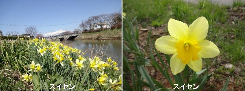 スイセンはイベリア半島を中心に、イギリス、ヨーロッパ中部、北アフリカを含む地中海沿岸地域に25~30種が自生します。房咲きスイセンをはじめとした一部の品種はギリシャから中国にまで分布し、日本にも野生状態で生育しています。RHS(英国王立園芸協会)には1万を超す品種が登録されており、その原種および花形、花色、草姿などから12系統に分類されています。なかでも、代表的な種類に、ラッパズイセン、八重咲きスイセン、房咲きスイセン、口紅スイセンなどがあります。系統によって開花時期が異なり、早いものでは11月中・下旬から、ラッパズイセンなどは3月から4月に開花します。いずれも秋から初夏にかけて生育し、夏には枯れて休眠します。花は、花弁と萼片の6枚と、その基部につくラッパ状の副冠からなっています。副冠は形がさまざまに変化しておもしろいものがあり、色も白や黄色、オレンジ色、ピンクなど多彩です。