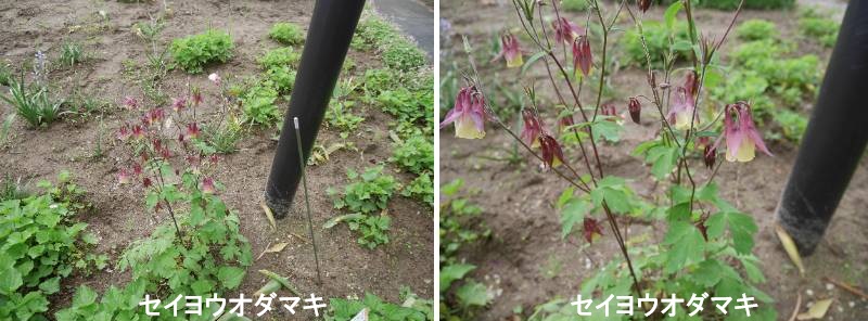 現在の日本で西洋オダマキと呼ばれているものは、ヨーロッパ原産のアクイレギア・ブルガリスと北米産の大輪の花を咲かせる数種との交配種をさすようになっています。オダマキの仲間はもともと雑種をつくりやすいこともあって、きわめて多数の園芸品種がありますが、多くの場合、国内では個々の品種名を明記せずに色別や混合種子の形で流通しています。いずれも丈夫な宿根草で、高さ30~50cmになり、株の中心からまっすぐ伸びた茎に赤、黄、青紫、白、桃色などの4~5cmの花を多数咲かせます。葉は根元にまとまってつきます。本来セイヨウオダマキの和名をもつアクイレギア・ブルガリスはヨーロッパ原産の多年草で、高さ30~50cm、オダマキに似ていますが茎がまっすぐに伸びて10輪前後の青紫色の花がうつむいて咲きます。長く栽培されてきたため白花や桃色、赤紫、黒紫色など花色の変異が豊富です。変種に八重咲きのフローレ・プレノがあり、変種のステラータは同じ八重咲きでも、距(花の後ろに突き出した部分)のないタイプで八重咲きのクレマチスのような形の花を咲かせます。