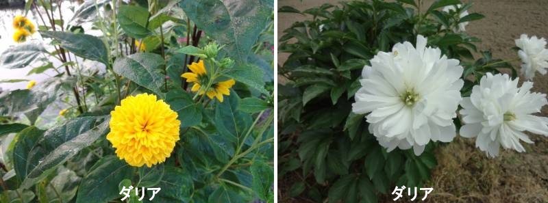ダリアは、キク科ダリア属の多年生草本植物の総称です。「ダリア」 の名は、スウェーデンの植物学者でリンネの弟子であったアンデシュ・ダール にちなみます。和名は、花の形がボタンに似ているため、テンジクボタンと呼ばれました。ダリアは豪華で力強く咲く大輪種から、優雅な中輪種や可憐な小輪種、シンプルな一重咲きや変化咲きなど品種が非常に多く、大小さまざまで用途も広く、古くから親しまれてきた春植え球根です。花形のタイプによって、代表的なデコラティブ咲き、弁先が細長くなるカクタス咲きなど、10数種に分類されます。そのほか、葉色の濃い銅葉系の品種や、木のように大きく育つ皇帝ダリア、チョコレートの香りのする品種など、ユニークなものもあります。栽培も比較的容易で開花期も長く、特に花色が鮮明で花数の多くなる秋には、花壇の主役ともなります。地中に根が肥大した球根があり、春植え球根として扱われますが、一年草のようにタネから育てられるミニタイプの品種も多数育成されています。