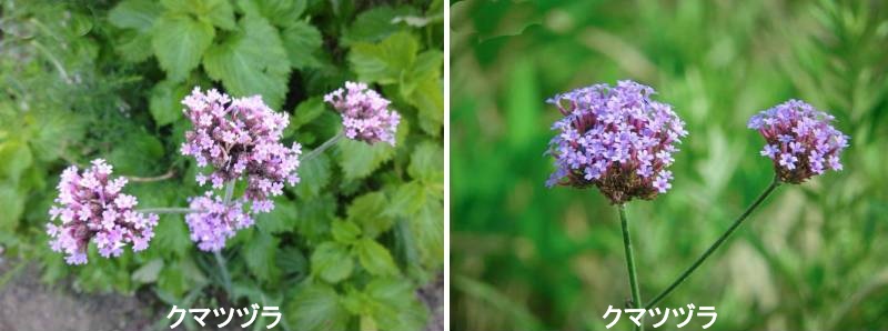 クマツヅラ(久末都々良)の名は900年代に書かれた「和名抄」に登場し、漢方では馬鞭草(ばべんそう)と呼ばれ止血、消炎作用があると云われています。 クマツヅラのラテン名のバーベナは「祭壇を飾る花」の意味で、古代ローマでは聖なる草とされていました。ヨーロッパではハーブとして利用され、解毒、婦人病、皮膚病など広く薬草としても用いられて、キリスト教の伝説では十字架にかけられたキリストの出血を止めた草とされています。クマツヅラの名の由来はよく分かっていなませんが、一説には花の後、米粒状の実が穂状に付くので「米ツヅラ」がなまってクマツヅラになったとか、また花穂が長く伸びるため、ウマウツツヅラ(馬打葛)の転」(花と樹の事典)とも言われています。クマツヅラは道端などに群がって繁殖し、小さな花が盛りを迎えることなく次々と咲き継いでいきます。繁殖力の強さから外来種と思 っていましたが、平安時代から日本にあってヨ-ロッパ、アジアにも広く分布すると云います。