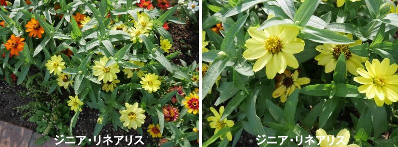 ジニアは、北アメリカや南アメリカなどに自生するキク科の植物です。ジニア・リネアリスの和名は、ホソバヒャクニチソウといいます。一般的なヒャクニチソウは、草丈が高く、大きいもので1m近くなりますが、ホソバヒャクニチソウはこんもりと横に広がり、草丈30cm前後にしかならないコンパクトな品種です。花色は、赤、白、オレンジ色、黄などがあります。一般のヒャクニチソウに比べて病気に強く、また乾燥にも強い傾向があります。ジニア・リネアリスは、初夏から秋までと、比較的開花期間が長いため、途中花数が減ることがあります。定期的に追肥を施し、花数が減らないように管理することが大切です。植えつけ2~3カ月後から、2カ月に1回、同じ肥料を同量土の上にばらまいて施します。日当たりのよい場所を選んで植えつけます。日当たりの悪い場所では、生育が悪くなり、徒長してしまいます。また、花色が悪くなったり、花数が少なくなったりするので、注意しましょう。