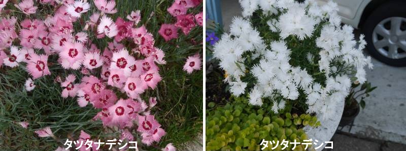 タツタナデシコは、ライオンロックと呼ばれるナデシコの仲間です。プルマリウスという原種はほとんど流通することはありませんが、高山植物っぽい雰囲気の品種も作られています。ヨーロッパの寒い地域が原産地なので、耐寒性は高いのですが夏に暑がって枯れることがあります。小渕沢でも近年の夏の暑さは堪えるようで、ペレニアルガーデンでは石組みや石垣に植え付けて育てています。蒸れと停滞水に気を付ければそれ程難しいお花ではありません。山野草を趣味とする人の間で昔から行われていた栽培法は、花が終わる梅雨明けの頃に株分けを兼ねた植え替えを行って、その際に細根をごっそりと切り取って、ほとんど挿し芽のようにして育てる、というものがあります。タカネナデシコなどヨーロッパアルプス産のダイアンサスなど、高山性のナデシコに使うテクニックです。ここまでせずとも夏越し出来ると思いますが、暑い地域にお住まいの方は参考にして頂ければと思います。