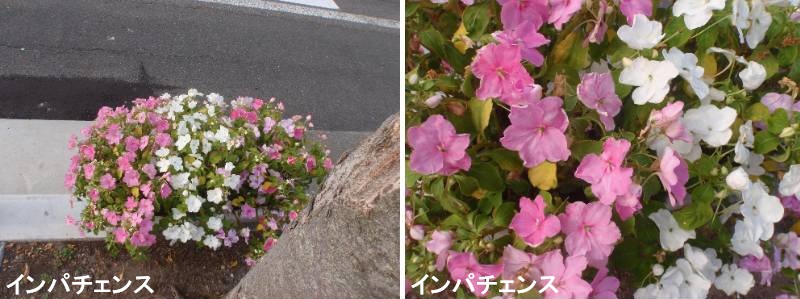 インパチェンスは初夏から秋まで咲く春まき一年草です。北向きの玄関や日陰の花壇、ビルの間のスペースなど、日当たりの悪い場所でもよく育ちます。花は一重から半八重、八重咲きまであり、特に人気の高いのは「カリフォルニアローズ・フィエスタシリーズ」に代表されるバラ咲き品種です。ほかに、一般的な花色に加え、赤と白や、ピンクと白などのバイカラーもあります。さらに、葉にも白やクリーム色の斑が入る品種があり、バラエティに富んでいます。生育が早く、株がこんもりとドーム状に盛り上がって、株いっぱいに花を咲かせる姿はとても豪華です。夏に切り戻せば、秋から再び美しい花を咲かせます。