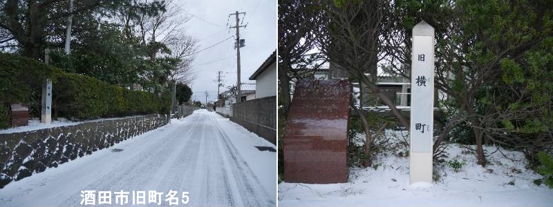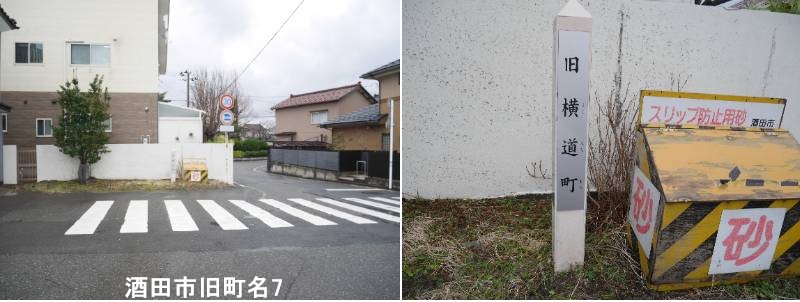 酒田東高等学校の西側(新井田川側)に標柱があります。酒田市旧横道町は、住居表示が実施される前(昭和30年代まで)に存在した酒田市の古い町名で、現在の酒田市の中心部にあたり、新井田川沿いの「河岸八丁」の一つとして最上川の舟運で栄えた湊町・酒田の歴史を伝える地名で、今は新しくつけられた町名(住居表示)に変わっていますが、一部には旧町名が残る標柱なども見られます。「横道町」は、東禅寺城の外堀があった場所が広くなり、それが町名になったとされ、当時の商工業の中心地の一つでした。つまり、酒田市旧横道町は、昔の酒田の繁栄を物語る「歴史的な地名」であり、現在の住所表示とは異なりますが、湊町・酒田の成り立ちを知る上で重要な名前です。