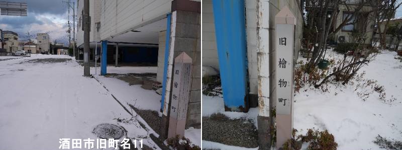 酒田のサンモール街の一本北側の通りに標柱があります。酒田市の旧檜物町(曲師町まげしちょう)は、酒田城下町の成立期に存在した町名で、主に魚(肴)を商う人々が住んでいた商業地であり、最上氏時代から酒井氏入国後にかけて、現在の本町周辺の場所で栄え、後に現在の本町一丁目・二丁目あたりに移転・再編された歴史を持つ地域を指します。最上氏の時代、酒田の城下町が形成される中で「曲師町」という町が生まれ、魚介類の問屋が多く住んでいました。「曲師(まげし)」は、馬の鞍(くら)を扱ったり、馬具を作る職人(曲師)が住んでいたことに由来する説や、魚の「肴(さかな)」を意味する言葉が転じたという説があります。