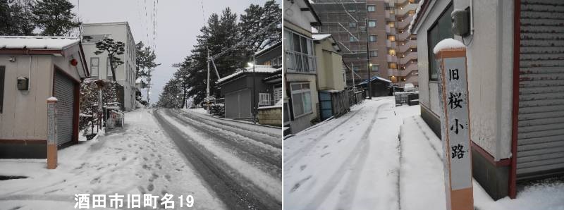 日和山小幡楼日和亭近くに標柱があります。酒田市の旧桜小路とは、かつて日和山への坂道にあった小路で、桜並木があったために名付けられた歴史的な地名です。幕末の「酒田十景」にも描かれた風情ある場所で、小幡前(現:下台町付近)から船場町方面へ続く坂道で、下台町横小路や小右衛門小路とも呼ばれ、廻船問屋も軒を連ねた酒田の要衝でした。下台町と船場町を結ぶ坂道で、菊水ホテル(現:山王くらぶ付近)の前を通っていました。下台町横小路、小右衛門小路、猟師町西小路などとも呼ばれていました。北前船の往来で栄えた酒田の港町の一部であり、廻船問屋なども置かれ、交通の要所として賑わいました。現在は「桜小路」という名前の小路として、当時の面影を残す場所として存在しています。