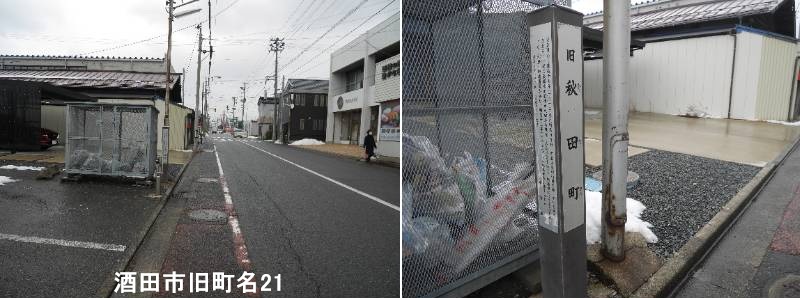 日和山上り口近く中町二丁目に標柱があります。酒田市旧秋田町は、かつて酒田から秋田へ向かう秋田街道沿いに栄えた宿場町・商業地で、旅館や商店が多く、伝馬町と並ぶ重要な地域でした。現在の「中町三丁目、日吉町二丁目、船場町一丁目」あたりに該当し、新住居表示(住む場所の表示)の変更により、現在は使われなくなった古い町名ですが、酒田湊の歴史を伝える重要な地名です。秋田街道(羽州街道)に面していたため、また秋田から来た人や物が集まる場所だったことから「秋田町」と名付けられたと言われています。街道沿いの要衝として、多くの旅籠(はたご:旅館)や商店が集まり、往来する人々で賑わいました。江戸時代から明治・大正・昭和にかけての酒田の繁栄を物語る地名であり、当時の絵図や古文書にも登場します。