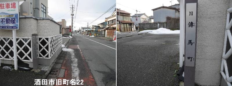 今町通りの日和山に近い場所(昔合同タクシーがあった)に標柱があります。酒田市の「旧伝馬町」とは、江戸時代に伝馬(宿駅間の人馬継ぎ立て)の役所や宿屋が置かれ、街道の要衝として栄えた歴史を持つ地域の旧称で、現在の酒田市中心部にあたり、新住居表示の実施で「伝馬町」の地名は変わりましたが、酒田湊の繁栄を物語る大切な旧町名です。 江戸時代の「伝馬」とは、人や荷物を馬で次の宿場まで運ぶ制度で、伝馬町にはそのための施設(伝馬屋敷、旅籠屋など)が集まっていました。日本海を縦断する浜街道(秋田街道)に位置し、秋田町と接する伝馬町は、物資や人の往来が非常に盛んな場所でした。より多くの馬を備えていた地域を「大伝馬町」、少ない方を「小伝馬町」と呼ぶこともあり、酒田でもそのような区分けがあったと考えられます。「旧伝馬町」は、かつて宿場町として賑わい、現代の酒田市が発展する基盤となった、歴史的に重要なエリアを指す言葉なのです。