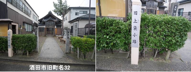 上袋小路自治会集会所入口に標柱があります。新井田川沿いの舟着き場として栄え「船乗町」ともいわれた「河岸八丁」のひとつです。明暦2年以前の創始。町の形が袋小路になっています。かって河岸八町と呼ばれた地域には、現在でも新井田川から本町通り方向へと続く細かい小路が残っています。昔ながらの家屋は失われたかも知れませんが、市内、特に本町・中町などの中心市街地周辺には、三十六人衆が活躍した時代を重い起こさせる通りや神社仏閣等の文化財が点在しています。私は街歩きをしながら、かつての酒田に思いを馳せるのが好きです。湊町酒田のいい所を発見して守り伝えていきましょう。
