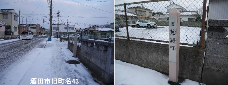 酒田郵便局の裏通りに標柱があります。酒田市の旧荒瀬町は、かつて酒田市に存在した歴史ある町名で、現在は住居表示の変更により「こあら」というひらがな表記の旧町名保存標柱が残る場所(おそらく幸町や中央の一部)を指し、もともと家屋が並んでいた地域が区画整理で道路となり、古くからの地名を親しみやすく残した珍しい例として知られています。江戸時代から続く酒田の古い町名の一つで、「酒田町」「内町」などと共に栄え、明治・大正時代の絵図にも見られます。つまり、酒田市旧荒瀬町とは、最上川の湊町として栄えた歴史を持つ古い地名が、現代の住所表示の中で「こあら」として親しまれ、保存されている場所、ということになります。