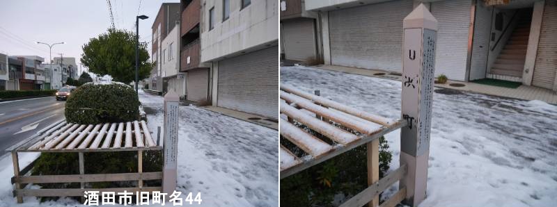 】中町二丁目の最上屋旅館の近くに標柱があります。酒田市の「旧下内匠町」とは、かつて存在した酒田市の古い町名の一つで、住居表示変更(町名変更)により現在の地名に変わりましたが、地域名や自治会名として「下内匠町」の名称が今も残っています。江戸時代に形成された「酒田町・内町・米屋町」などの旧町名が昭和30年代まで使われ、その後、新しい住所表示(住居表示)の実施に伴い変更されたもので、「内匠(たくみ)」の名の通り、町割りに深い関わりがある地名です。忠臣蔵の浅野内匠頭と同じ読みで、正式には「たくみ町」と書かれ、口頭で「たぐ町」「たぐまぢ」と略されて呼ばれることもありました。現在でも中町3丁目などに「下内匠町自治会」が存在するなど、地域には旧町名が引き継がれています。