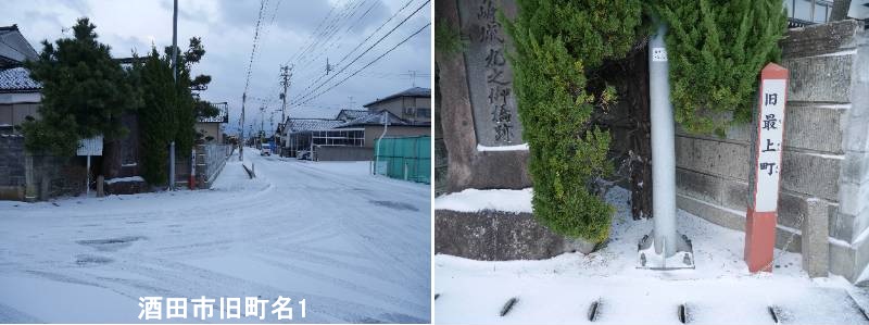 松原小学校西側のイオンに向かう幹線道路に標柱があります。酒田市の旧最上町とは、江戸時代に最上氏の浪人や家臣が住んだことに由来する地名で、元は「最上町」と呼ばれ、後に「左沢町」とも呼ばれた歴史的区域で、酒田市が合併・住居表示を実施するまで使われていた本町通り周辺の城下町の一部を指します。特に、最上氏転封後に浪人(足軽)が住み着き、「最上町」の名が生まれ、その後左沢から移住してきた足軽により「左沢町」とも呼ばれるようになった経緯があります。元和8年(1618年)の最上氏改易後、主人を失った浪人(足軽)が酒井氏に抱えられ、彼らが住んだ町が「最上町」と名付けられました。鵜渡川原の旧城下町の一部で、酒田町組(本町など)と区別され、東禅寺城の外堀の内側に位置していました。現在は住居表示で「最上町」という町名は消滅しましたが、その歴史的背景から、本町通り周辺の、かつて最上町と呼ばれた地域(例:千日堂前、本町など)を指す言葉として使われることがあります。