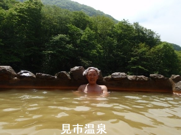 明治元年から源泉かけ流しの湯治宿として代々営まれており、現在に至っている見市温泉は、北海道では珍しい川露天風呂があります。山の奥地にあるため空気もきれいで、澄んだ夜空に星が美しく瞬く様は一見の価値があります。周囲には人家はなく山奥の一軒宿です。浴室は思いのほか広く、湧出量が多いので大きな浴槽にたっぷりのお湯が注がれ、赤茶色に濁ったお湯はかなり熱めです。お湯が流れる床も茶色く染まっています。温泉成分が濃いので窓にかかるお湯で窓が曇りガラスのようになっています。香りは弱いですが鉄と石膏の臭いがあります。露天風呂は小ぶりですが眺めは最高です。10m下に見市川が流れていて、せせらぎの音と深い山の緑と谷を渡る風がとても心地よです。