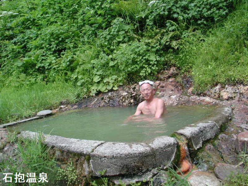 石抱温泉は、山形県のほぼ中央部にある肘折温泉の、奥にある変電所の前を通り、西南方向へ銅山川沿いに約3km進んだ所に湧いている温泉です。炭酸の量が異常に多く、体が浮いてしまう為石を抱いて入浴するという事から、「石抱温泉」となりました。5分ほど浸かっていただくだけで、後から体がポカポカしてきます。正に養分100%。秘湯中の秘湯と言えるでしょう。2~3台駐車出来るスペースの入口には、自然岩にペンキで書かれた看板があります。そこから獣道のような道を歩いて進みます。出掛ける時期や時間を選ばないと、動物や虫などに遭遇しそうです。