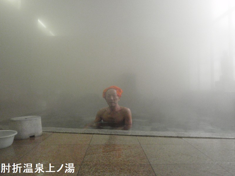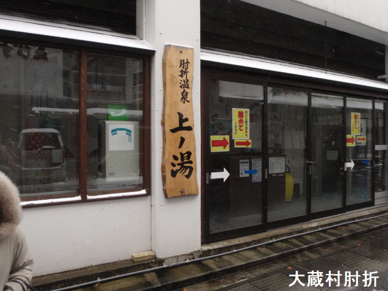 肘折温泉は、1200年もの歴史がある湯治場です。肘折の湯は主に切り傷や火傷に効果があるといわれています。上の湯は温泉街の中心にある共同浴場で、肘折温泉のシンボルです。隣には薬師神社への長い石段があります。建物はコンクリートで、がっちりした造りで、浴室には大きな石造りの湯船があります。上の湯の湯は熱くもなく温くもなく適温の無色透明の透き通ったきれいな湯です。浴槽縁にはお地蔵様が祭られています。源泉は3箇所から投入、注入されていて浴槽内の湯も新鮮です。飲泉コップがあり飲んでみるとクセがなく飲みやすいです。湯上がり後はサッパリ感が出てきました。