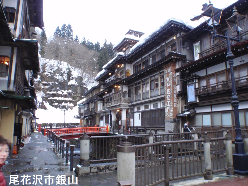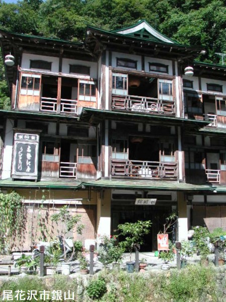 銀山温泉の入口に立つと、時代の歯車が大正時代でとまってしまったような錯覚にとらわれます。川をはさんで両側に建つ旅館は、まるで昔の宿屋の舞台装置です。能登屋旅館は、その中ほどに、望楼のような三階建ての木造建築を保っていた。なるほど文化財的な古い建物である。銀山温泉は、名のように銀山で栄え、寛永年間の最盛期には2万5000人もの人夫がいたと言います。温泉と銀山の町の繁栄のほどが伺えます。銀山は、川の上流20分ほどのところに廃坑の跡を見せていました。能登屋は、この地に初めて宿を構えたのが明治25年のこと、その初代が能登半島の出身だった事から能登屋の名がつきました。大正10年に改築された大正ロマン漂う本館は国の登録文化財になってます。他の秘湯のように深山や渓谷の一軒宿ではありませんが、古い温泉街を保存している点では珍しい存在です。