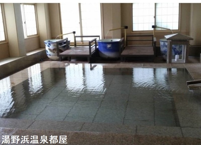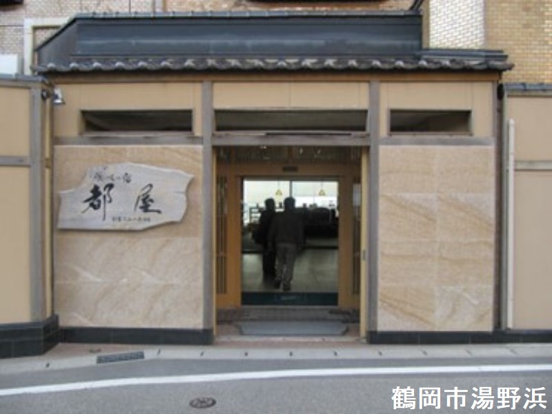 湯の浜温泉は山形県鶴岡市にあります。日本海に面し、波の音と松風の聞こえる海浜の温泉郷として有名です。湯の浜は山形県で最も大きい海水浴場として、そのシーズンには多くの海水浴客で賑わい、日没には日本海に沈む真っ赤な夕陽が見られます。都屋は、海と砂浜が目の前の温泉町に建つモダンにアップデートされた上品な老舗の温泉旅館(大正八年創業)です。天井までの窓を設けるロビーは、テーブルセットが並び品のある落ち着いた雰囲気です。