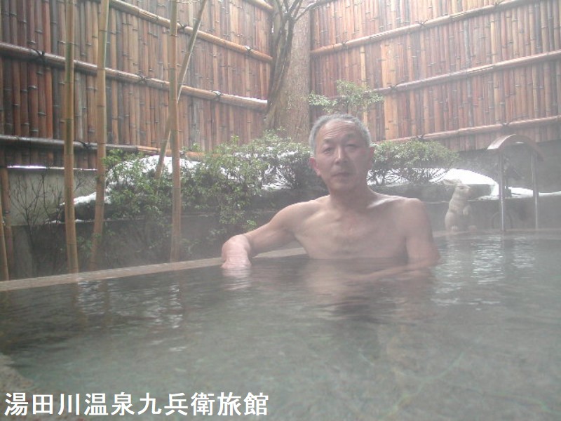 湯田川温泉は金峰山の麓にある湯治場として栄えた温泉郷です。鶴岡の奥座敷として地元民に親しまれ、庄内藩政の時代には、藩主や美人の湯としてお姫様がお忍びで温泉を楽しんだという言い伝えがあります。湯田川温泉郷は、今も古くから伝わる庶民的な湯治場としての面影が残っています。華やいだ雰囲気は無く静かな佇まいの中で、道を挟んで肩を寄せ合うようにして並ぶ黒塀の宿や白壁の宿が建ち並びます。そんな由緒ある温泉街の一角に九兵衛旅館がありました。綺麗にリニュアルされた当施設で今回は昼食付きの日帰り入浴をさせて頂きました。