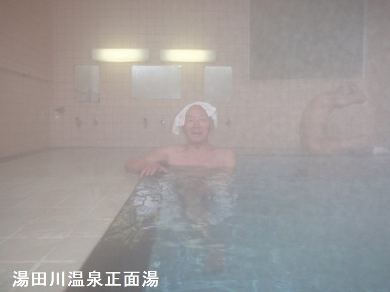 湯田川温泉の歴史は古く1300年前からあるという事です。白鷺によって発見されたという開湯伝説があります。地味な雰囲気の温泉街ですが2001年には国民保養温泉地に指定されている湯田川温泉には大小2箇所の共同浴場、正面湯と田の湯があります。正面湯は温泉街の中央に、田の湯は路地を入ったところです。大井商店で入浴券を買うと、商店の女将さんが「鍵を開けるから一緒に」と案内してくれます。外来客は鍵を開けてもらうシステムです。浴槽は足を畳んで6人程度が入れるタイル張りの風呂です。温泉はナトリウム・カルシウム硫酸塩温泉で、これが加水・加温無しで注入されています。風呂の大きさに比較し、注入量が多いので風呂の縁から温泉が絶えず流れ出しています。館外にかけられたボードには、日本屈指の注入率の共同浴場と高らかに謳っているのが頷けます。新鮮この上ない適温の温泉、加えてすべすべ感とキュキュ感があります。浴室の換気が今一で、湯気で周りが欲見えないのが残念です。