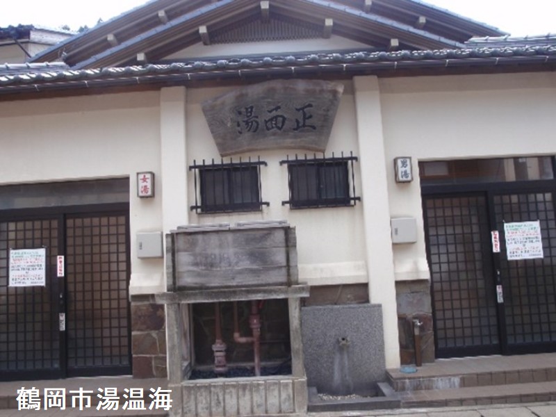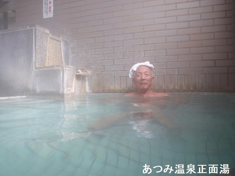 あつみ温泉の誕生は今から1,000年以上も昔に遡ります。弘法大師の夢枕に童子が立ち、その示現によって発見したとか、傷ついた鶴が草むらから湧き出る湯に足を浸しているのを木こりが見つけた、など諸説語られております。庄内藩主酒井忠勝公が入国した後、藩公の湯役所が設けられ、以来近郊の湯治場として栄えてきました。古くから文人墨客も多く訪れ、松尾芭蕉、与謝野晶子、横光利一など、小説、詩歌に数多くうたわれています。、「正面湯」という名前は庄内地方においてその地の中心的な公衆浴場を意味しています。ここのお湯は少し薄い白濁りに見えますが、鈍っている訳ではありません。すんごく熱くて入るのにためらいます。でも入るぞー!源泉は二段になったところを伝って温度を少し下げて湯船に落ちています。水の蛇口もあって、熱ければ水を入れるように書いてあります。甘い石の臭いがします。熱すぎるのもあって長くは入れません。上がって休んでも冷える気がしません。湯上りはわりとさらさらしていますが、とにかく温まりが引かないです。