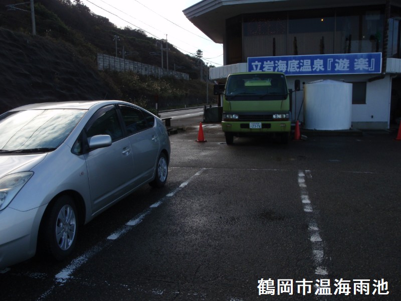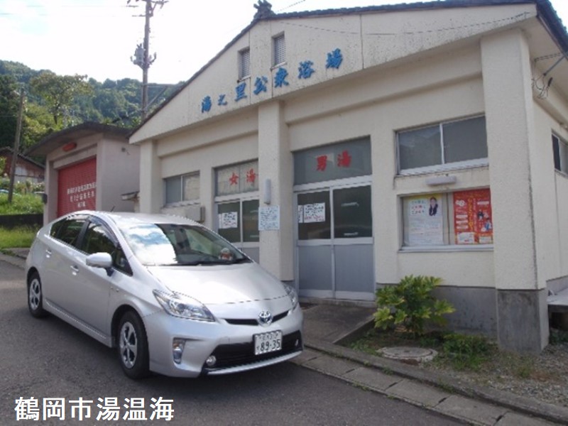 湯之里公衆浴場に行くには温海川を渡らなくてはなりません。別名を里の湯ともいう湯之里公衆浴場は、橋を渡った後、たちばなやの横をずっと進んでいった山形県福祉休養ホームの隣にあります。建物はほとんど飾り気が無くて、いかにも観光客向けではなく地元向けという感じです。受付などは無く、ビジターは箱に入浴料200円を投入します。浴室は、4人サイズの浴槽に、壁に突き出ている蛇口より源泉が投入されており、水栓金具には白い析出がこびりついていました。お湯はここのみならず、U字型の曲線部分の底部からも熱いお湯が出ているのですが、そのお湯は、右側手前に設けられている湯溜まりから、床の下を通って浴槽へ流れ込んでいました。この細長い槽に張られているお湯は篦棒に熱いのです。飛び上がるほど熱いお湯がそのまま注がれているためですが、地元密着型の共同浴場でうかつに水で薄めると、常連さんから怒られる可能性が高いので、その熱さに耐えながら湯船に入ったものの、せいぜい1分が限界です。これは烏の行水で済ませるしかないかと諦めかけていたところ、後から地元の常連さんが登場し、仏頂面で掛け湯をしはじめたこの常連さんも、さすがに熱すぎると感じたらしく、お湯を止めて水道の蛇口を全開にしたので、そのおかげで適温にまで落ち着きました。