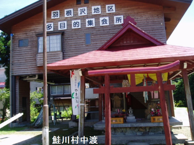 山形県鮭川村は、稲作とキノコ栽培が盛んな人口6千の農村です。豪雪地として知られるこの地域の村の中心部からさらに山間に行った所に旅館4軒の静かな温泉街、羽根沢温泉があります。大正8年、石油発掘のためボーリングをしていた所、偶然湧き出した温泉です。以来90年に渡り、地区では湯神社を祭るなど温泉を大切に守ってきました。この地区では、殆どの家に風呂を持たず、地区の共同浴場を内湯がわりに利用してきました。三ツ森山と大森山の麓にある温泉です。