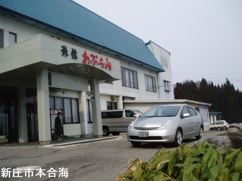 山形県の母なる川「最上川の中腹にある新庄市の本合海地区の国道47号線から杉林を登った所に新庄温泉「あぶら山」があります。数件の宿らしい物が建っていますが、現在営業をやっているのは2軒くらいです。他は潰れていました。雪の重みで!!この施設は昭和6年に油田発掘で発見されたために、当初は油山温泉と呼ばれていました。泉源は、東北では珍しいブロムヨードを含有するアルカリ泉です。