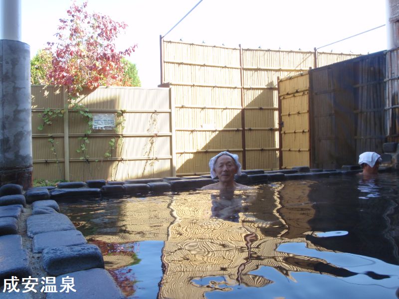山形市の漆山から寒河江方面へ県道を走っていてまもなく中野地区に入ろうかというときに、右手田んぼの中に「古湯の秘湯」という文字が見えてきます。平成9年の4月にできた総合福祉施設「いきいきの郷」の施設内にある温泉です。成安温泉の源泉名「古湯の秘湯」の由来は、地下約1400mからくみ上げた古代湯からきています。浴室は、L字型の浴槽が石のタイル張りで十分な広さがあります。今は使われていないようですがジャグジーやジェット水流らしい名残もありました。お湯は無色透明で温泉自体の匂いは感じません。非常にうっすらと消毒の塩素臭はありますが、故意に嗅がなければ気になりません。高濃度にしてはベタベタした感じもないさっぱりしたお湯です。湯温は41℃と低めですが、成分のおかげか湯上り後もポカポカが続きました。外には石組の露天風呂があります。内湯に比べて小さいですが、頭上には屋根付きなので雨や雪でも問題ありません。