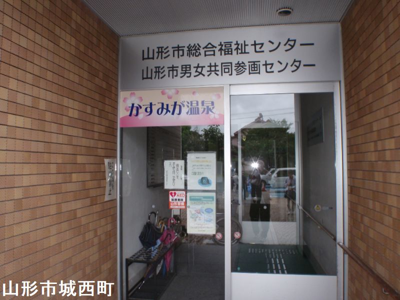 山形市総合福祉センター「かすみが温泉」は、福祉センターの中にある公営の日帰り温泉です。山形駅から徒歩10分程度で行ける近さと料金の安さが特徴です。霞城公園もすぐ近くです。福祉センター内なので温泉施設といった雰囲気はありません。ここは一見住宅街の中にある地味な複合公共施設のように見えます。実際に入り口にある看板の表記も温泉もあくまでも「おまけ」のような感じです。それにしても市の公共施設に温泉が併設されているというのは全国的に見ても珍しいのではないですね。正面入口より裏口の方が温泉場所に近く便利です。建物は公共施設らしく大きく、広いロビーの奥の方に受付があり、券売機でチケットを買い入場します。浴室は10人以上入れる大きめの浴槽が一つあります。お湯は無色透明、特徴は特に感じられませんでしたが、適温でよく温まれました。
