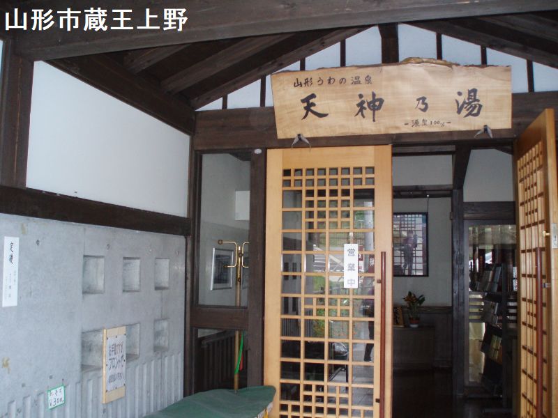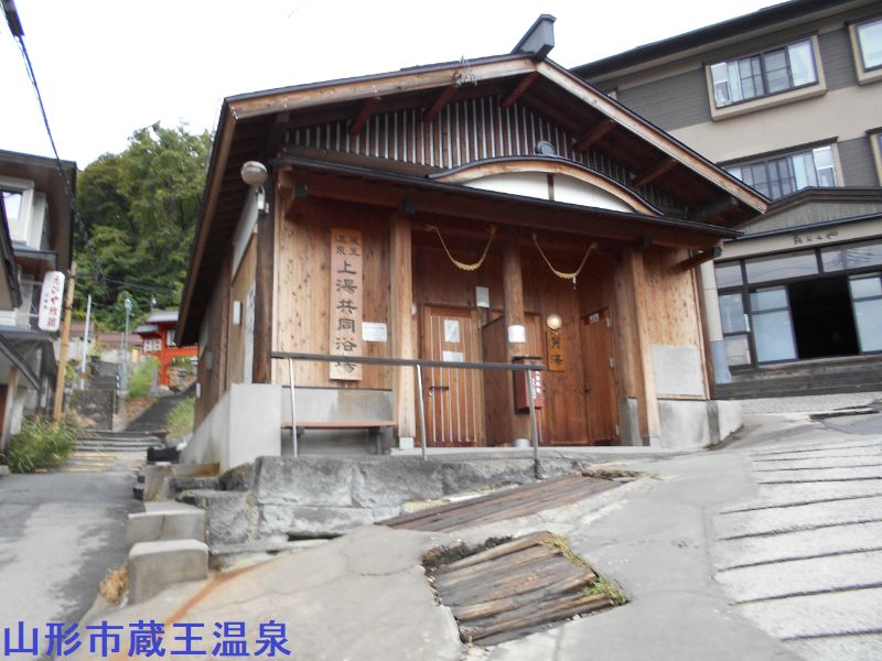 高湯通りを上っていくと途中に「下湯 共同浴場」があり、ラーメン屋とかジンギスカン屋を通り過ぎ、さらに上るとほぼ突き当たり、酢川温泉神社の鳥居の手前に「上湯共同浴場」があります。上湯共同浴場がリニュアル致しました。外にはウッドデッキや、水車などが置かれ休憩スペースが新たに設置されました。 昔の「上湯」を知るお客様は変わりようにびっくりされるかもしれません。 ちょっと熱めの源泉かけ流しは相変わらずです。木造の趣きある木造浴舎は、きれいな木目が温泉街にピッタリマッチします。この上湯は温泉街の高所に位置し、振り返ると温泉宿など町並みが見渡せて、所々湯気が立ち昇り硫黄の香りが仄かに感じられ蔵王温泉に来たことを実感できます、浴室は、豊富な湯が湯船の縁からザザーッとあふれています。白く濁っているようで意外と透明度は高く下に沈んだ白い湯の華が白濁感を演出しています。かけ湯後、チョット熱いですがゆっくり湯船にこの身を沈めます。6人も入れば窮屈な湯船に過剰なまでもの湯が注ぎこまれています。日本第二位の強酸性温泉ではありますが、若干のツルスベ感があって肌に刺激あるようには感じません。湯底に積もった白い湯の華がパッと舞い上がり温泉気分を盛り上げてくれます。香りは硫化水素系のツンとする刺激のあるもので甘い硫黄系とは明らかに違います。湯を口に含めばレモンの様な強烈な酸味があって歯がザラザラ溶けそうです。