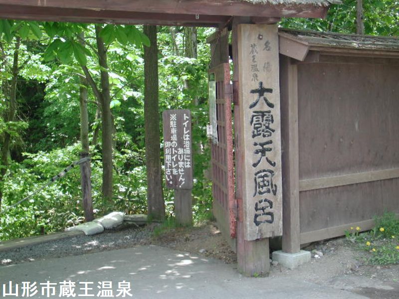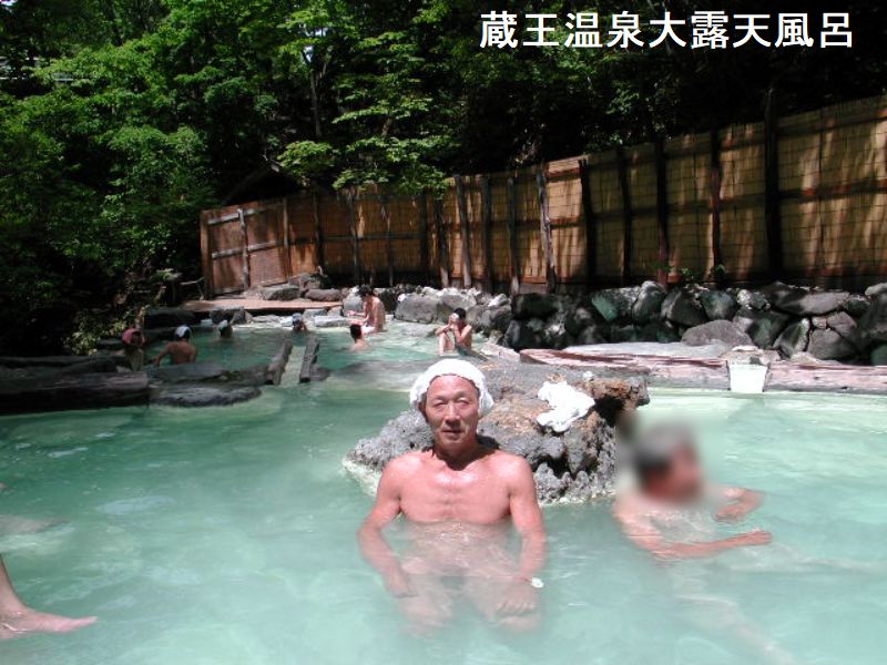山形蔵王中腹の高原に湧く。信夫高湯温泉、白布高湯温泉と並び蔵王高湯温泉は奥羽三高湯温泉と言われ古くから湯治客が訪れた所です。蔵王温泉の名物になっているのが、蔵王温泉大露天風呂です。木々に囲まれた渓流沿いにあり、野趣あふれる自然石のお風呂は、200人が同時に入る事が出来る広さです。関所のような門をくぐると、はるか下方にダイナミックな男性用の露天風呂が見えます。目に眩しいほどの新緑の階段を下って行くと、岩で組まれたピックな湯船が、渓流の間近に二段に分かれて造られています。通路側には葦簀を立てて覆いはしてあるものの、開放感あるワイルドさに魅せられてファンも多く賑わっていました。この渓流は自然湧出のお湯の川で、上流にある女性用には川をせき止め川湯も有ります。