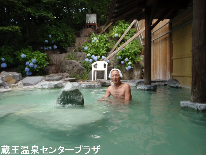 蔵王センタープラザは蔵王スキー場のゲレンデ直下、蔵王中央ロ-プウェイの温泉駅の隣にあり、宿泊施設・温泉・おみやげ店レストラン・仮眠室・カラオケルームなどがある複合施設です。 「日帰り温泉」が目当てなら「ゆ〜湯」の幟の奥のドアを抜けると、すぐに浴場への入口が目に入ります。湯は内湯も源泉100%で湯船には、湯の花が漂い、ひとめでその濃厚さが分かります。蔵王温泉は強酸性の温泉です。酸性の温泉はデトックス効果があるとされており、体内の毒素の排出や解毒殺菌の作用があるとされています。露天風呂は、緑に囲まれ、とても風流な雰囲気です。お湯は青白く色付く硫黄泉です。